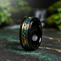 🔹 Material: Black Tungsten Carbide, Green Fire Opal, Gold Leaf, Gold Strip