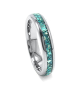 "Celestial Aqua" Aquamarine Birthstone Silver Tungsten Wedding Band for Women-4mm