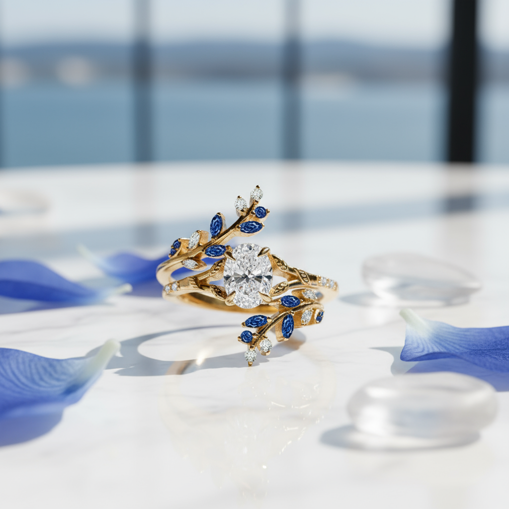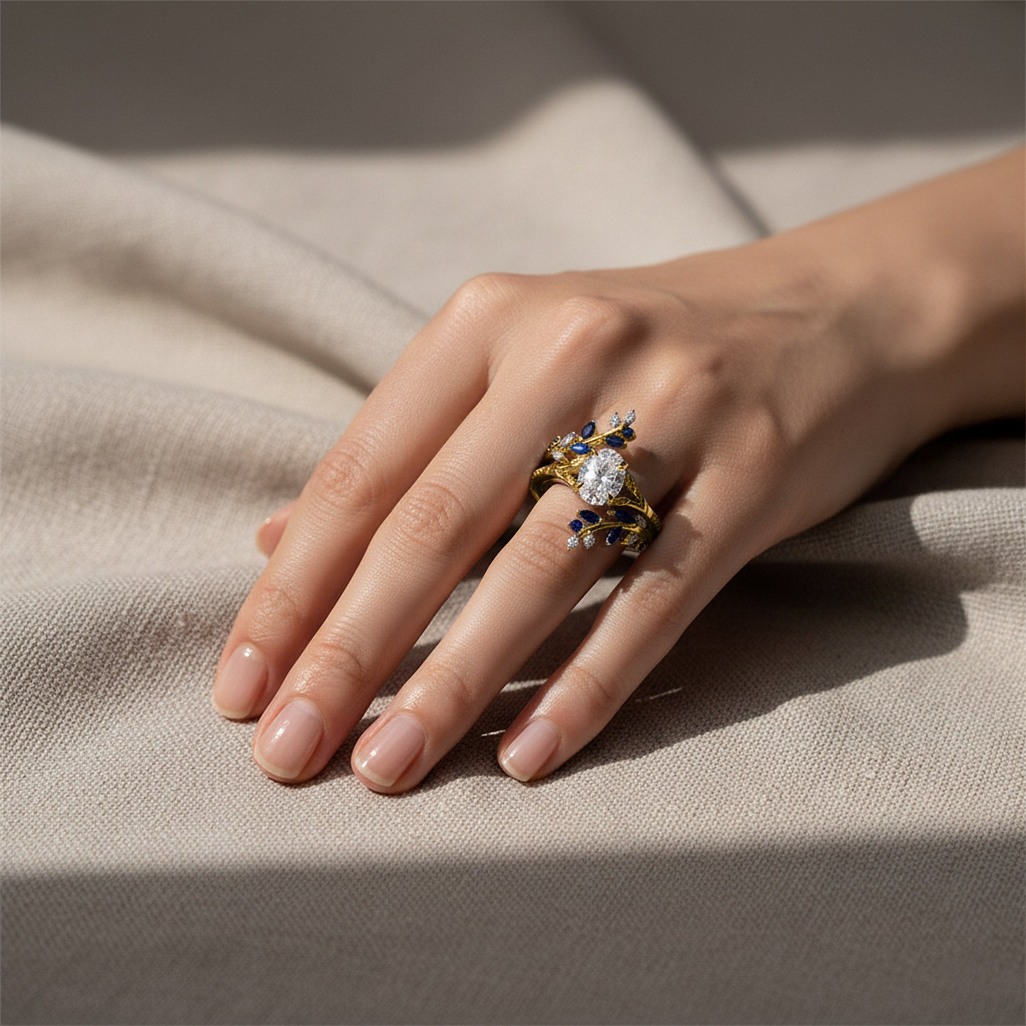 🔹 Accent Stones: Simulated Diamonds (CZ) & Blue Sapphire