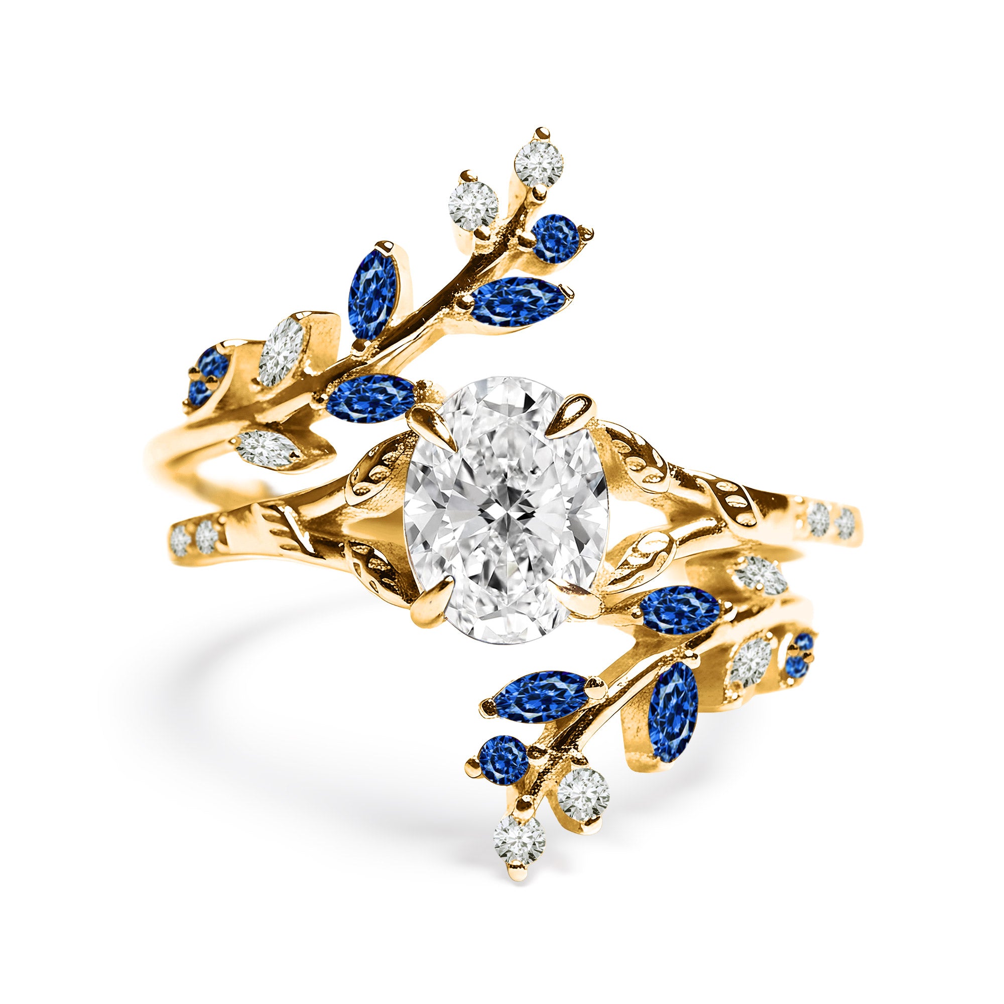 Oval Cut CZ & Blue Sapphire Engagement Ring – 925 Sterling Silver