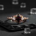 "Scarlet Flame" – Black Fire Opal Engagement Ring Oval Cut with Simulated Diamonds, Black Onyx Accents