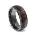 We fuse rugged materials with modern details to make rings that speak. That might be a black men's wedding ring made from hammered tungsten, a shimmering inlay of deer antler, whiskey barrel and koa wood, or even a mens guitar string wedding band designed for a musician's soul. Our craftsmanship is personal. It always will be.