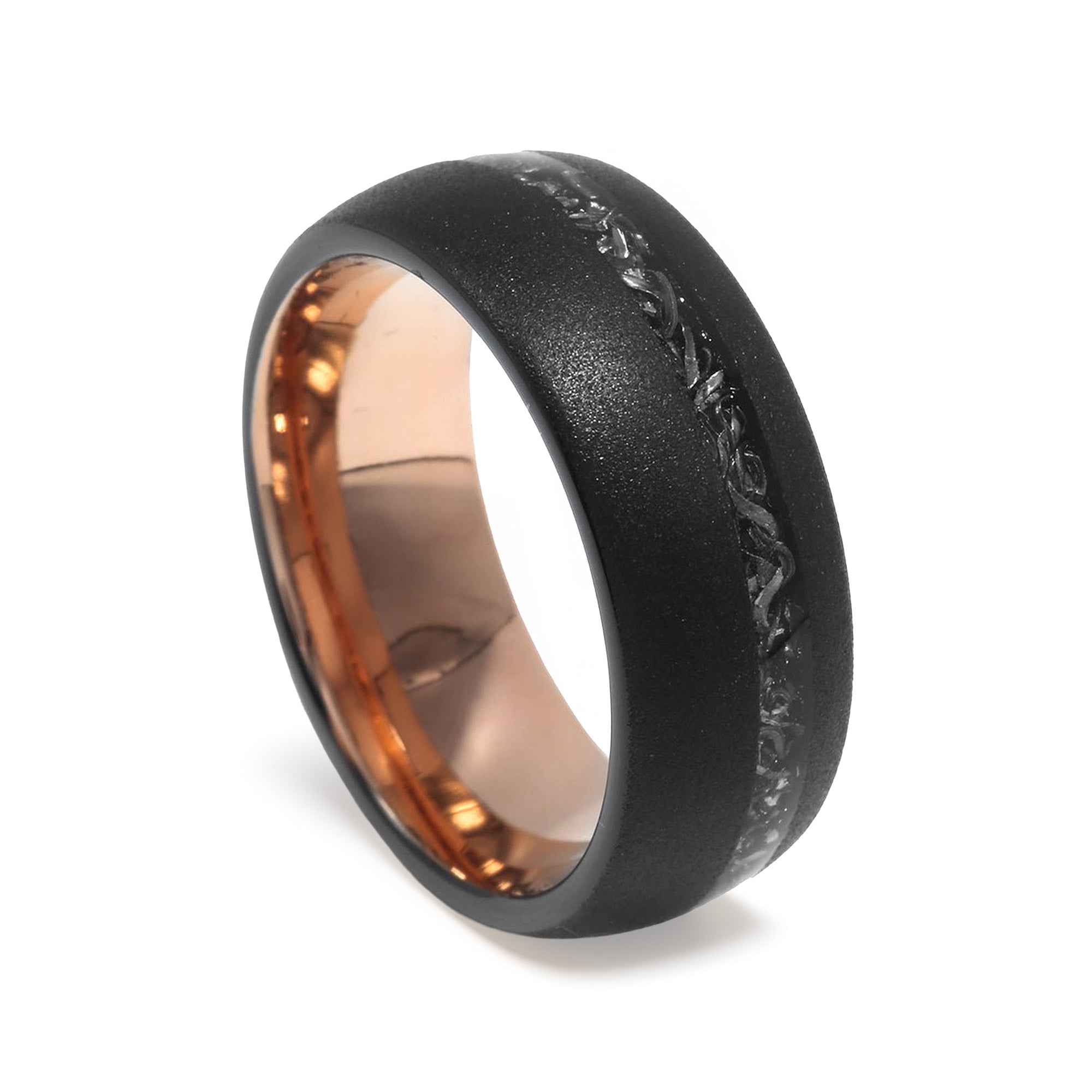 "Lunar" Meteorite Inlay, Rose Gold, Tungsten Carbide, Sandblasted Finish-8mm
