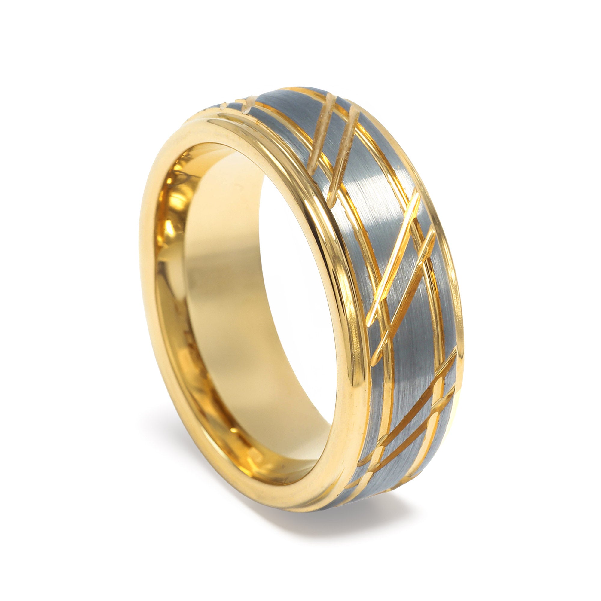 "Golden Hammer" Silver and Gold Tungsten Carbide, Brushed Design-8mm