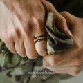We fuse rugged materials with modern details to make rings that speak. That might be a black men's wedding ring made from hammered tungsten, a shimmering inlay of deer antler, whiskey barrel and koa wood, or even a mens guitar string wedding band designed for a musician's soul. Our craftsmanship is personal. It always will be.