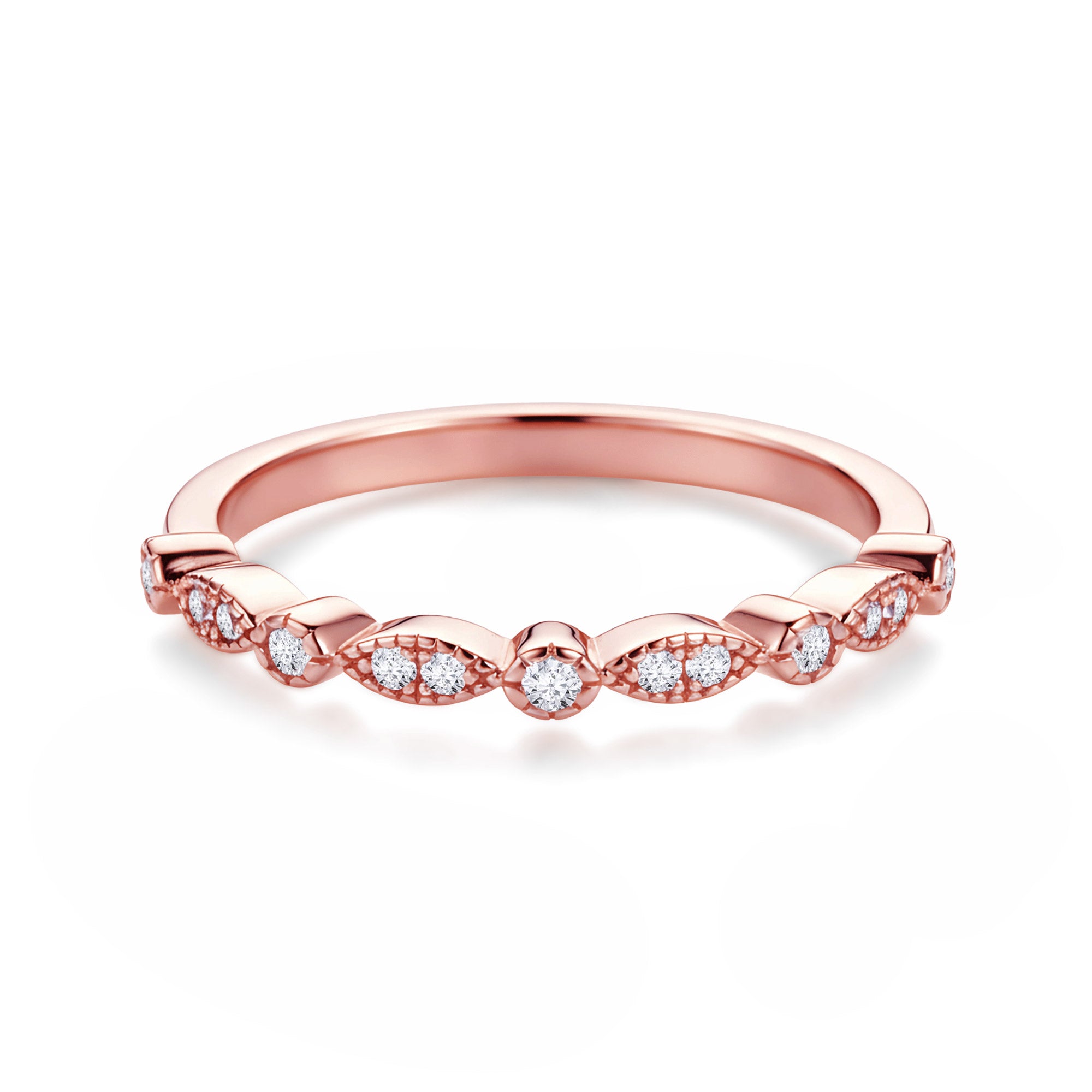 "Rosélumina" – 14K Rose Gold Vermeil Half Eternity Ring with Diamond Accents | Sterling Silver Band