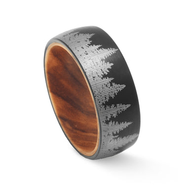 "Everwood" Tree Design Surface with Whiskey Barrel Inner Ring Black Tungsten Carbide Ring 8mm