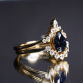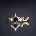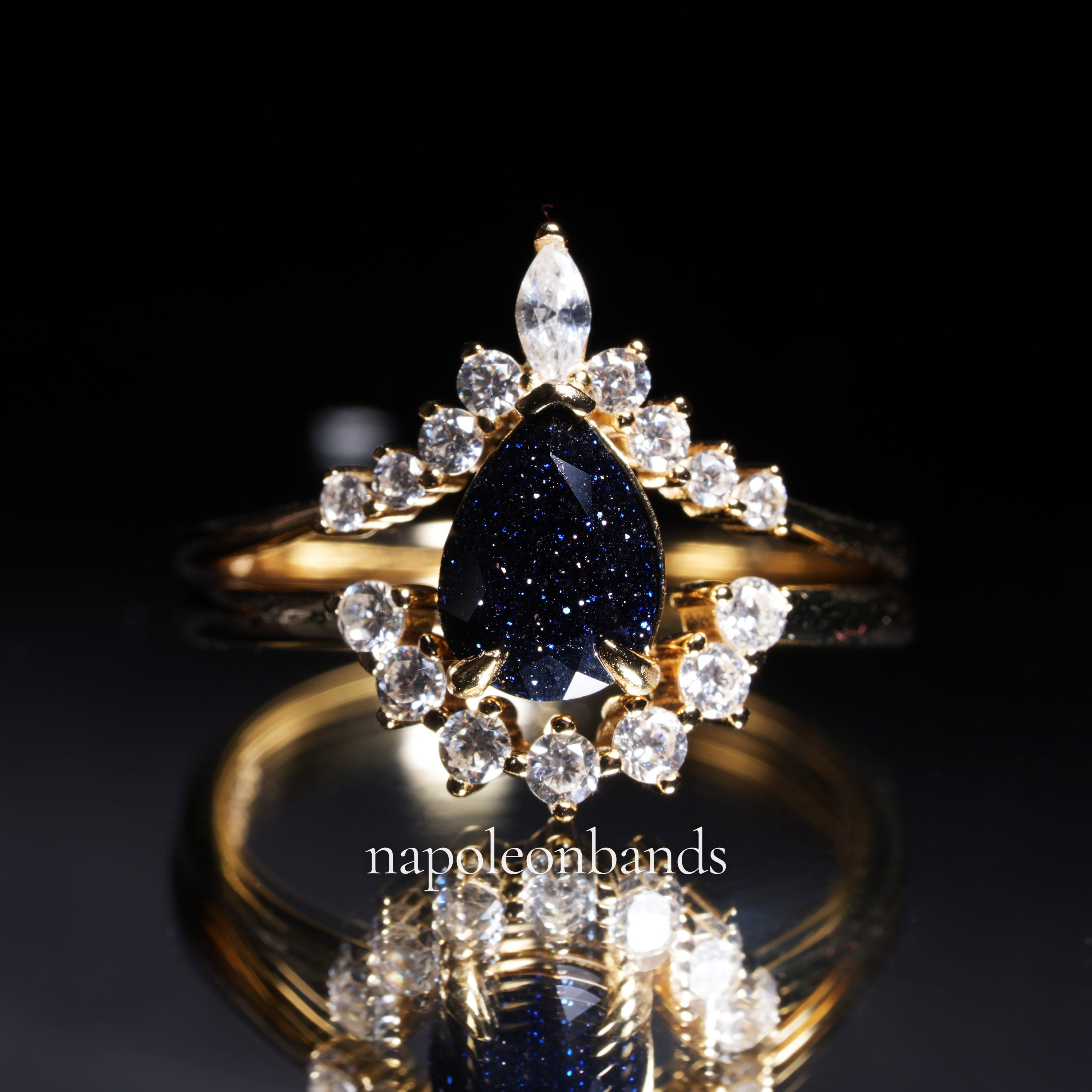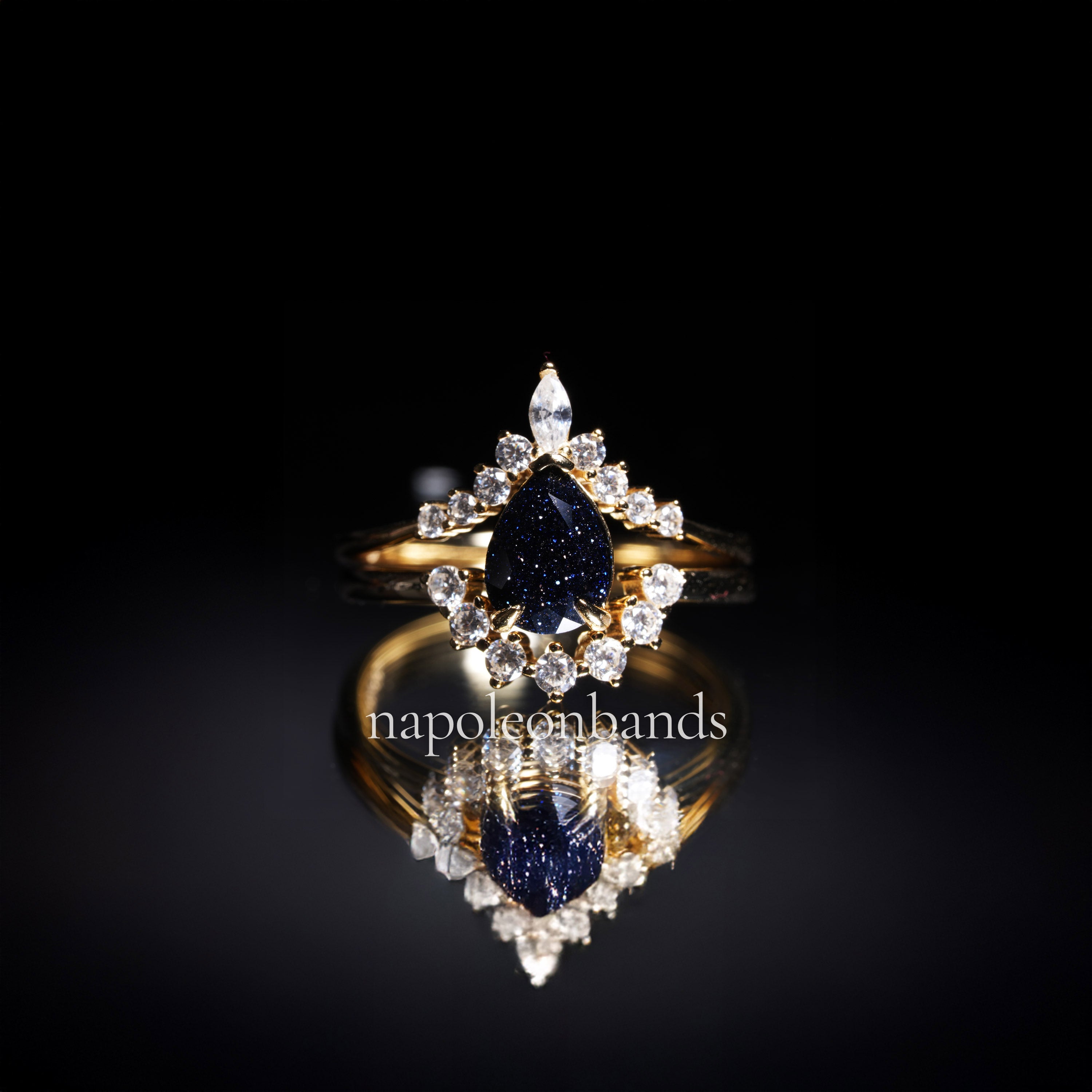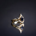 "Stellar Tear" – Galaxy Blue Sandstone Pear Cut Engagement Ring wit Diamond Accent in Yellow Gold Vermeil