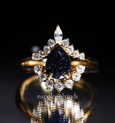 Galaxy Blue Sandstone Pear Cut Engagement Ring – 14K Yellow Gold Vermeil on Sterling Silver