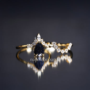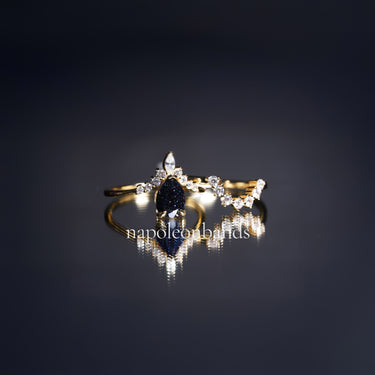 This galaxy blue sandstone ring brings the magic of the night sky to your jewelry collection. Its pear-shaped shimmer captures celestial beauty, while the gold vermeil setting provides a warm, radiant finish. Whether chosen as an engagement ring, promise ring, or anniversary gift, it’s a stunning symbol of eternal love and infinite possibilities.