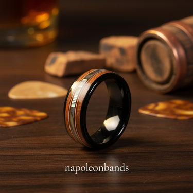 We fuse rugged materials with modern details to make rings that speak. That might be a black men's wedding ring made from hammered tungsten, a shimmering inlay of deer antler, whiskey barrel and koa wood, or even a mens guitar string wedding band designed for a musician's soul. Our craftsmanship is personal. It always will be.